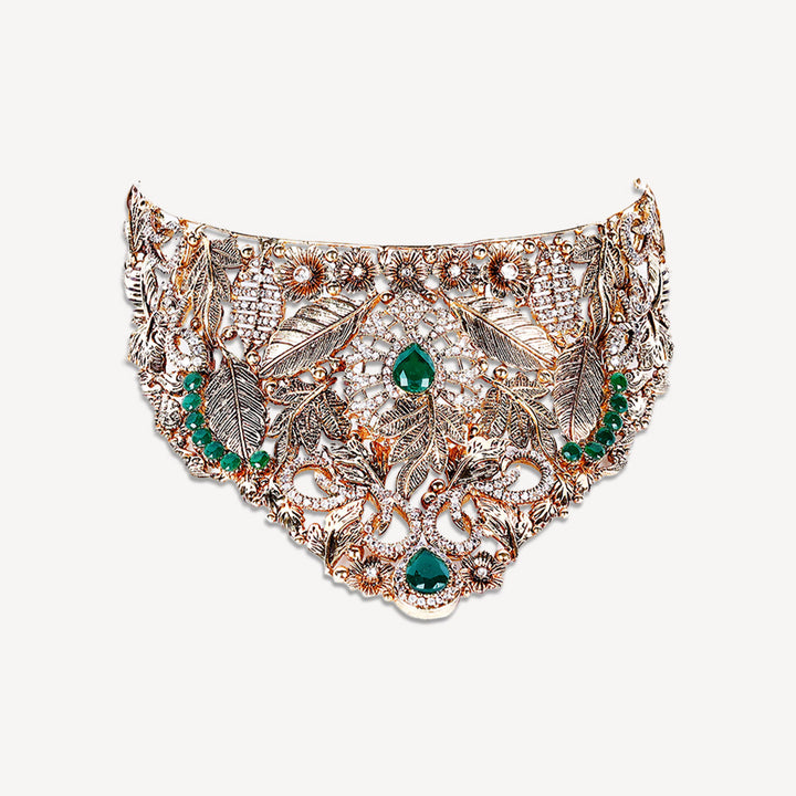 Noorsay “Emerald Glow” Necklace Set. Gold-Plated with White Zarqoon & Green Stones. Grace meets brilliance in the “Emerald Glow” set by Noorsay. Crafted with radiant white Zarqoon and vibrant green stones, this stunning set is finished in rich gold plating — a perfect harmony of sparkle, color, and classic elegance. Whether worn at a festive celebration or a special occasion, this piece speaks of timeless beauty with a touch of modern flair.