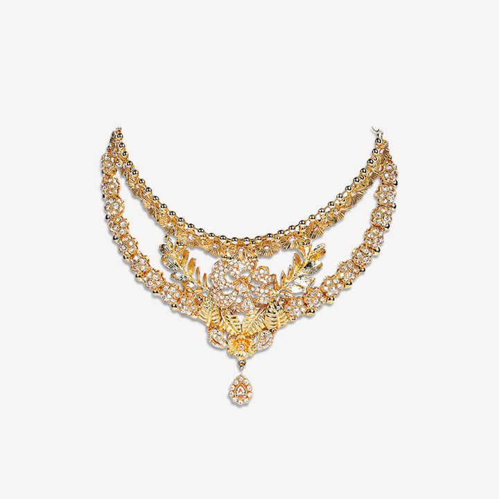 Noorsay “Golden Radiance” Necklace Set. Gold-Plated with White Zarqoon. Simple. Elegant. Radiant. The “Golden Radiance” set by Noorsay is a timeless blend of pure white Zarqoon stones set in rich, glowing gold plating. Designed for those who adore classic sparkle with a luxurious golden finish, this set exudes grace and refinement — a perfect match for both traditional and modern styles.