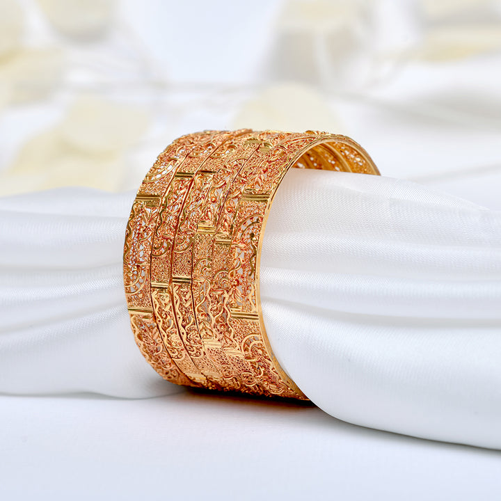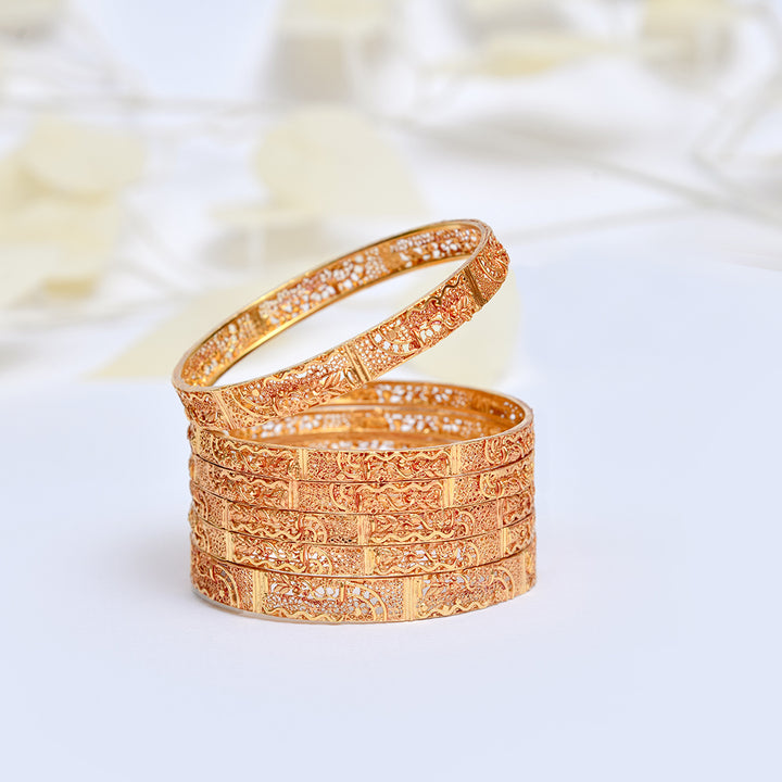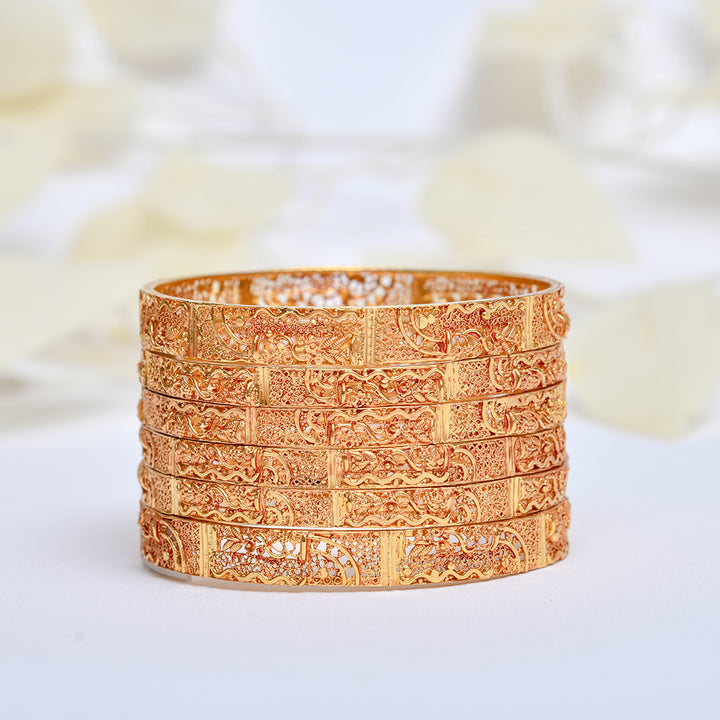 Elegant like a star in the night sky, Noorsay Sitara glows with a blend of golden warmth and silver light. The antique-style motifs give it a vintage charm, while the two-tone polish allows for versatile styling — traditional or modern.