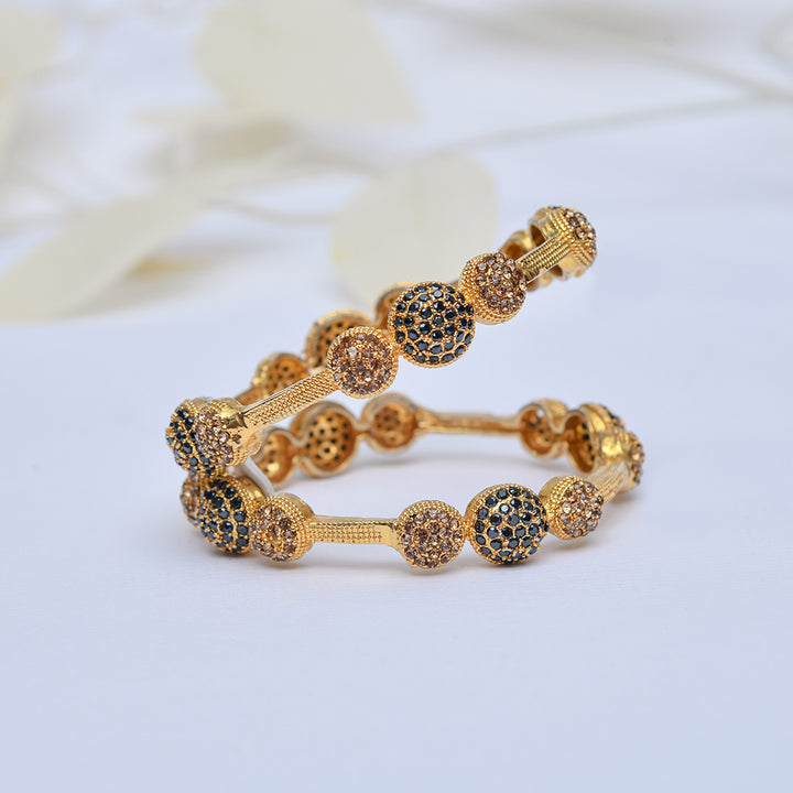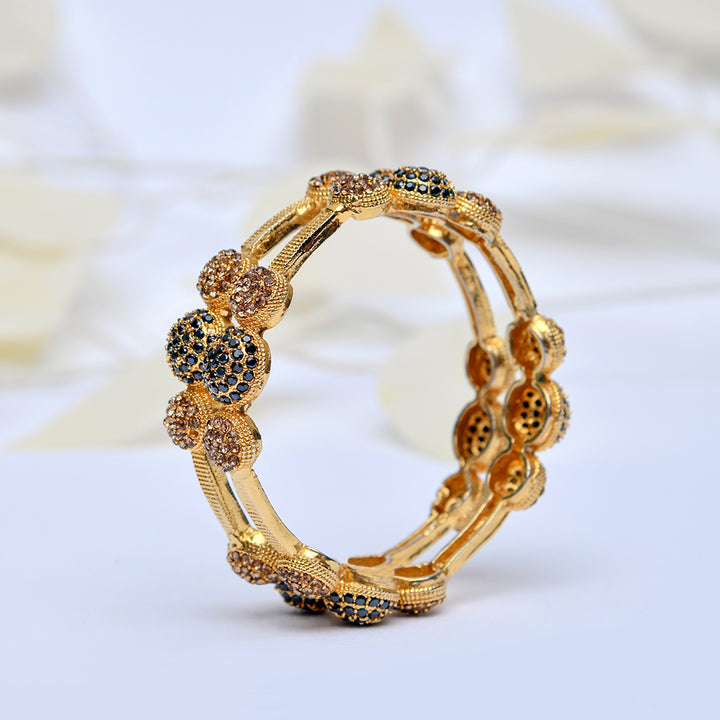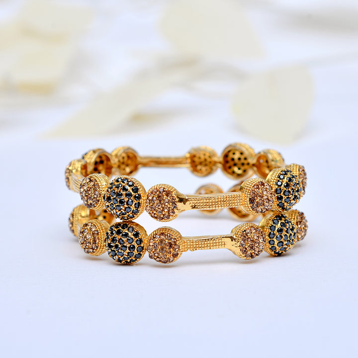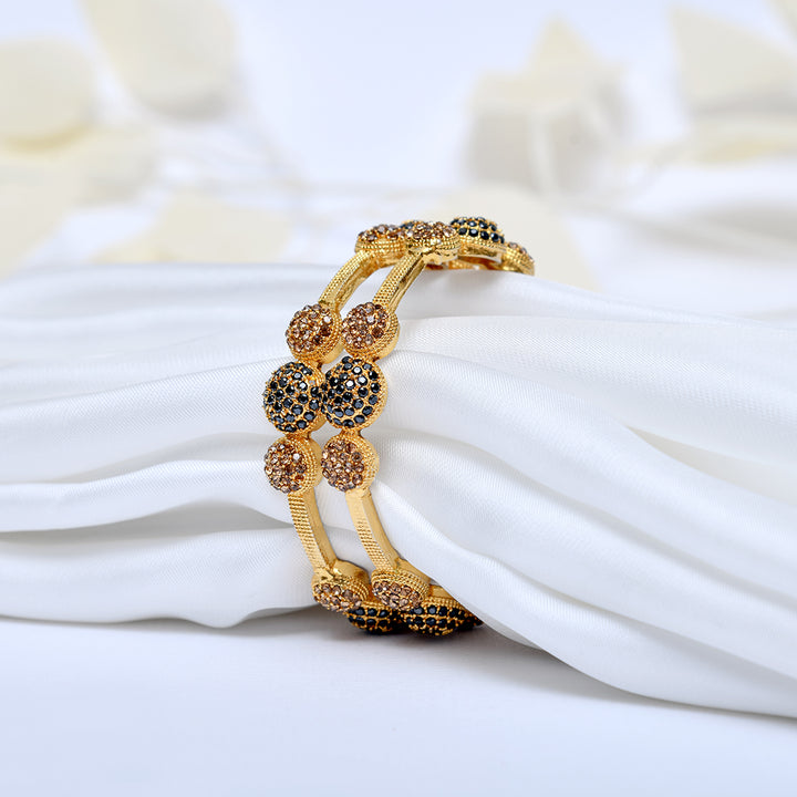 Noorsay Regal Noir Kara.Description: A stunning Noorsay Indian Kara, exquisitely crafted with a blend of champagne zarqoon and black stones. Finished with a luxurious polish, this timeless piece radiates elegance and adds a royal touch to every look.