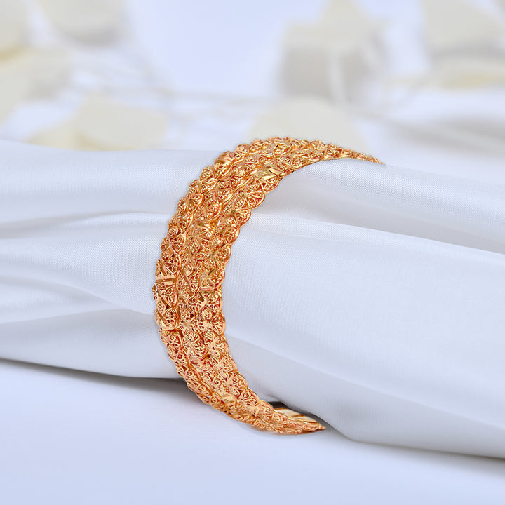 Noorsay Imperial Glow Kara. Description: The Noorsay Indian Kara, adorned with big champagne zarqoon and champagne stones, embodies timeless beauty and grandeur. Its elegant gold-plated finish enhances the sparkle, making it a perfect statement piece for special occasions.