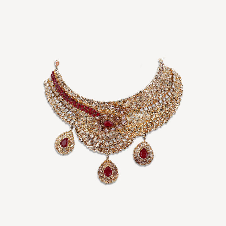 Noorsay “Zarqoon-e-Laal” Necklace Set Gold-Plated with Red Beads, Stones & Zarqoon An exquisite blend of passion and sophistication, the “Zarqoon-e-Laal” set by Noorsay features a stunning combination of red beads, radiant red stones, and the fiery brilliance of authentic Zarqoon (Carnelian). Set in a luxurious 24-carat gold-plated base, this piece is perfect for making a bold statement while exuding timeless elegance.