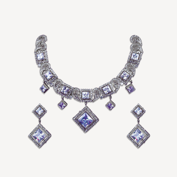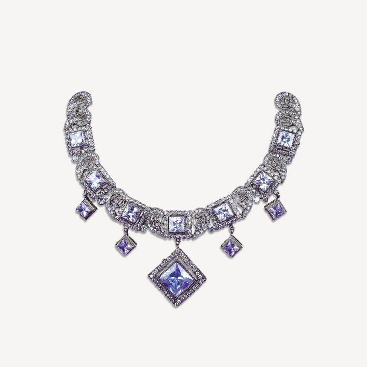 A stunning union of minimal elegance and timeless beauty — the “Noor-e-Safeed” set by Noorsay is crafted with a sleek silver-plated finish and centered with the glowing richness of authentic Zarqoon. Subtle yet strikin