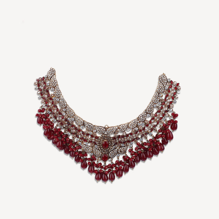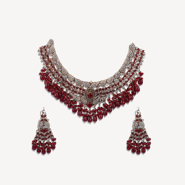 Noorsay “Zarqoon-e-Laal” Necklace Set Gold-Plated with Red Beads, Stones & Zarqoon An exquisite blend of passion and sophistication, the “Zarqoon-e-Laal” set by Noorsay features a stunning combination of red beads, radiant red stones, and the fiery brilliance of authentic Zarqoon (Carnelian). Set in a luxurious 24-carat gold-plated base, this piece is perfect for making a bold statement while exuding timeless elegance.